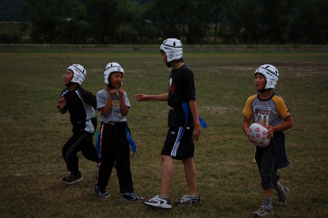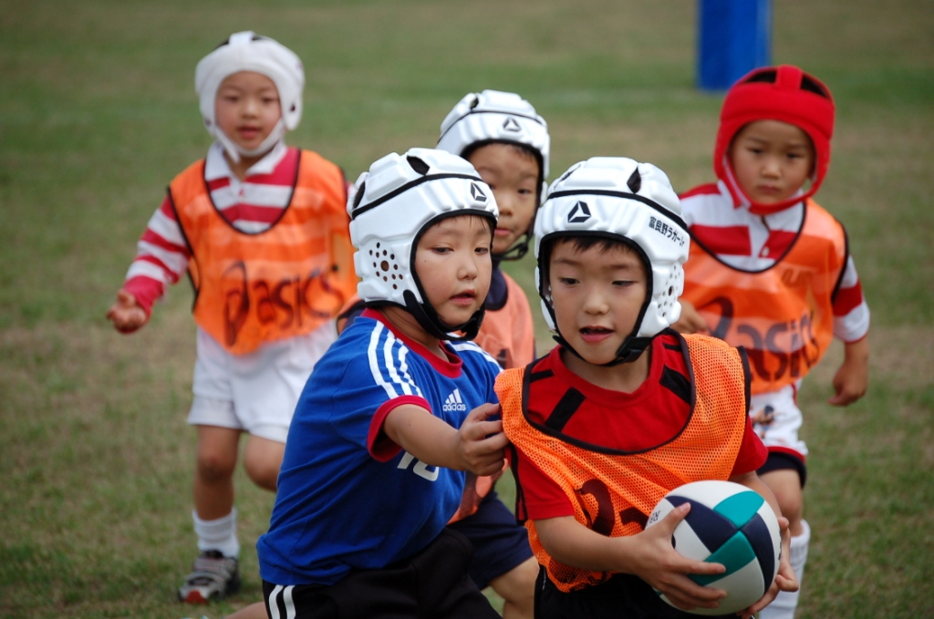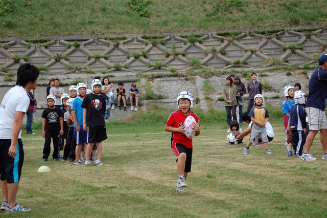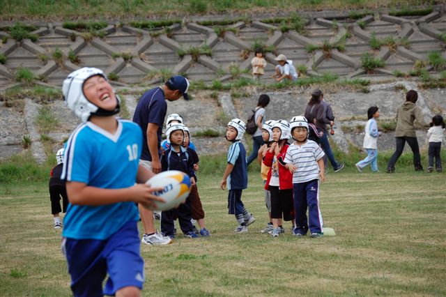 小学生の低学年はタックルありのラグビーを行っていました。