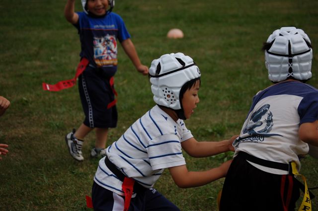 幼児もついにタグベルトをつけ、少しラグビーっぽいことをしました。